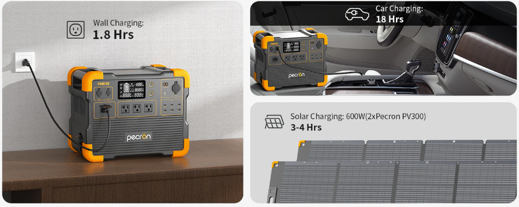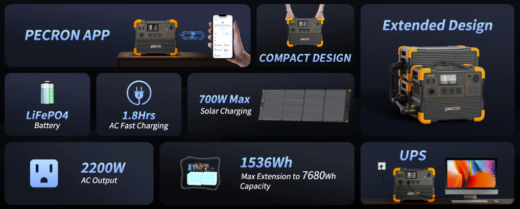 La Pecron E1500LFP cuenta con una excelente capacidad de 2200 watts y ofrece carga súper rápida. Puede cubrir usos regulares al aire libre y emergencias en el hogar, y su diseño compacto lo hace muy conveniente para transportar. Además, puedes controlar la estación de energía E1500LFP de forma remota mediante Wifi, incluso cuando estás fuera en el trabajo.